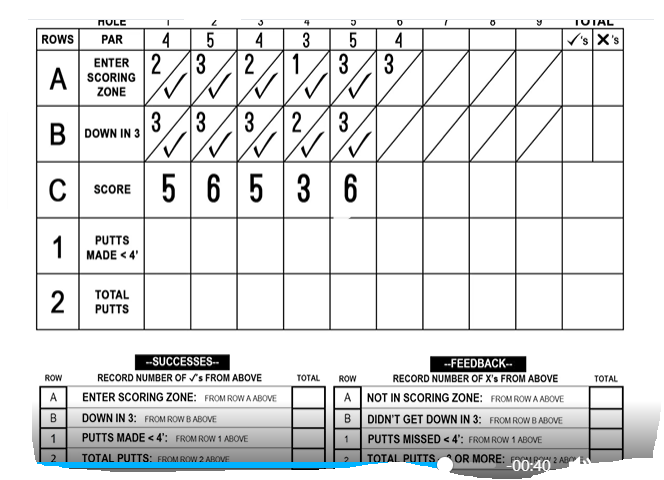 THE SCORING METHOD går ut på att förstå att du ska ha en spelstrategi för varje hål, som utgår ifrån din förmåga. Dvs hcp och score och de slag du får på varje bana. Använda dina slag! Är det en lång par fyra, där jag har ett extraslag, är det ok att nå green på 2+1 slag dvs mitt 3:e. Annars skulle ju GIR green in regulations, vara inspel på mitt andra för att få par (4 slag). Med ett extraslag, har jag råd att gå in på green på mitt 3:e . Då har jag fortfarande 2 puttar kvar för att använda mina 5 slag. Tänk så!! Och glöm för höga förväntningar och räkna score för mycket.