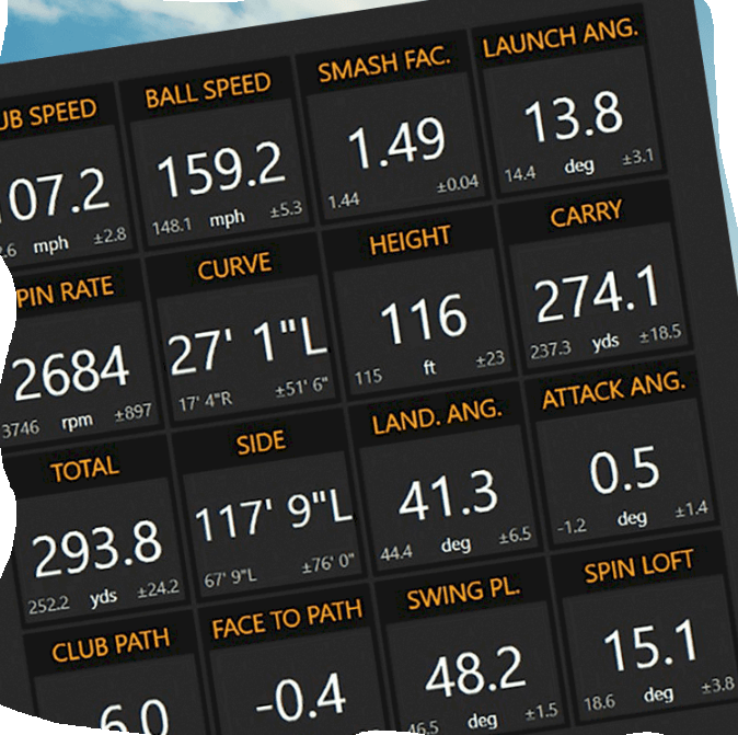 Nu är vi många som går inomhus till olika träningshallar. Själv har jag vilat från golf mer än en månad, efter att ha levt i Algarve, Portugal i en månad i höstas. Så nu är jag taggad igen!! Bäst är det förstås om det finns Toptracer eller Trackman som kan hjälpa till förstå hur du lyckas. Toptracer mäter bollens hastighet, längd, carry etc medan Trackman är ett lite annorlunda system som mäter flera andra värden också. Även klubbans hastighet och svingspår. Bilderna visar vilka värden du kan få. Lär dig systemen – det tjänar du på!